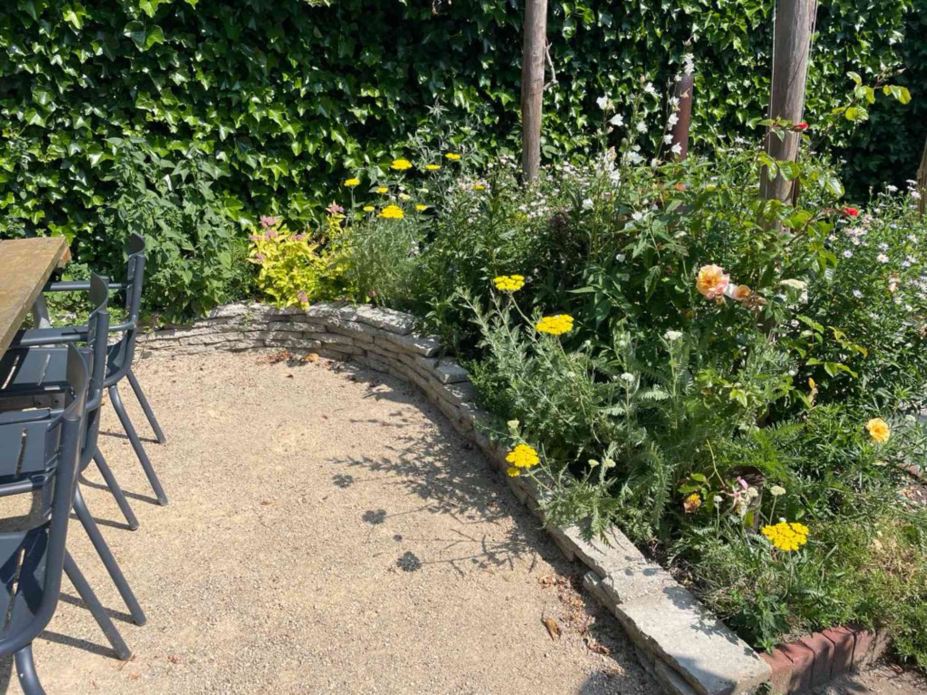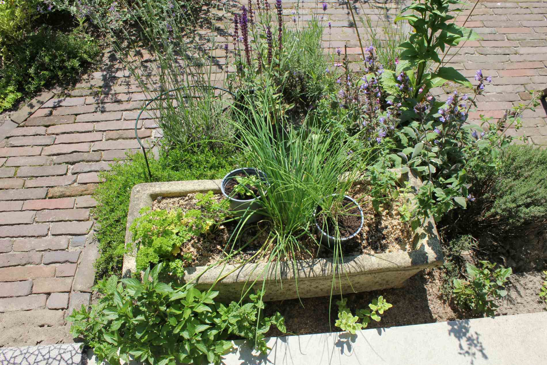 Verhoogde borders en kruidenbakken van hergebruikte steen
