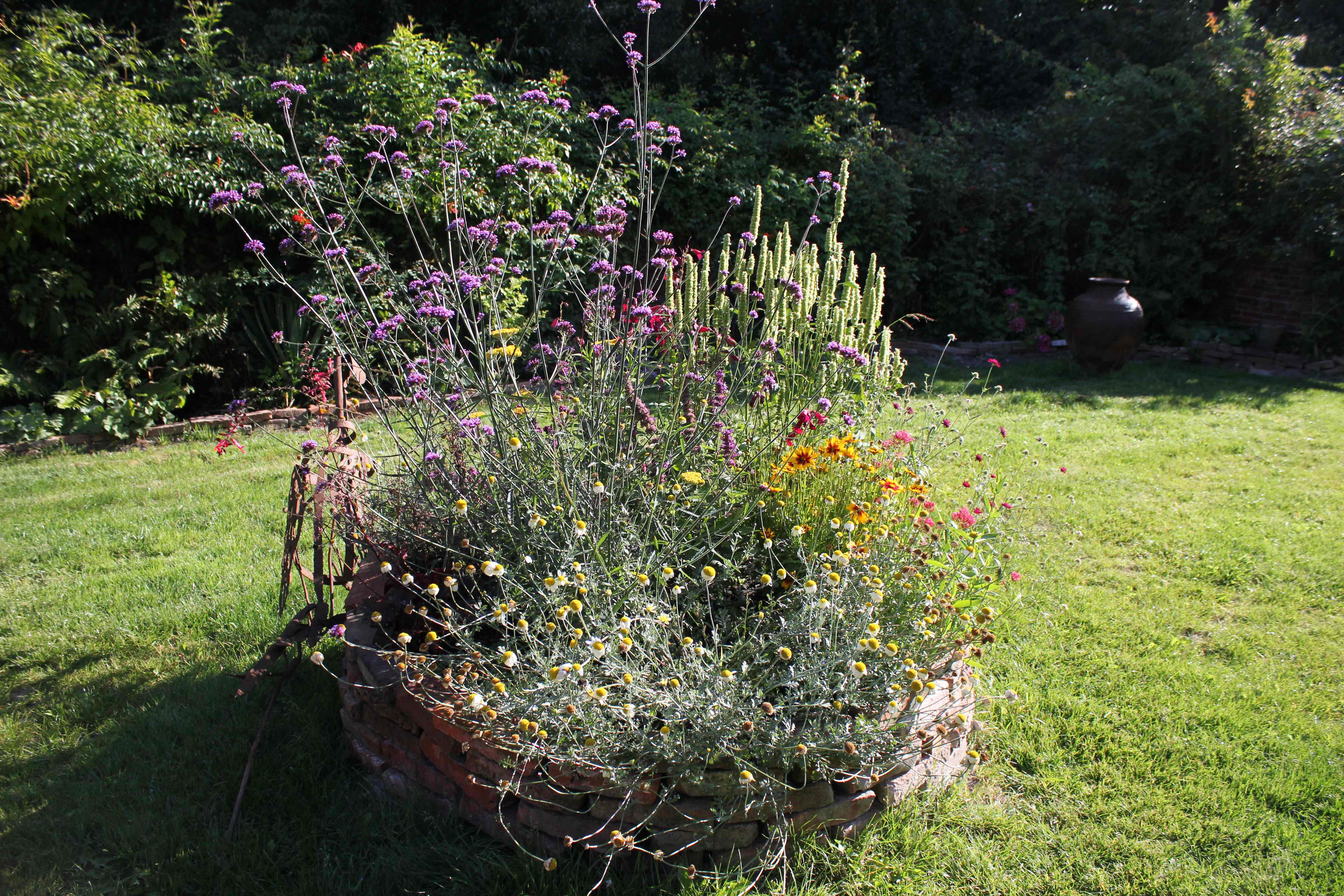 Verhoogde borders en kruidenbakken van hergebruikte steen