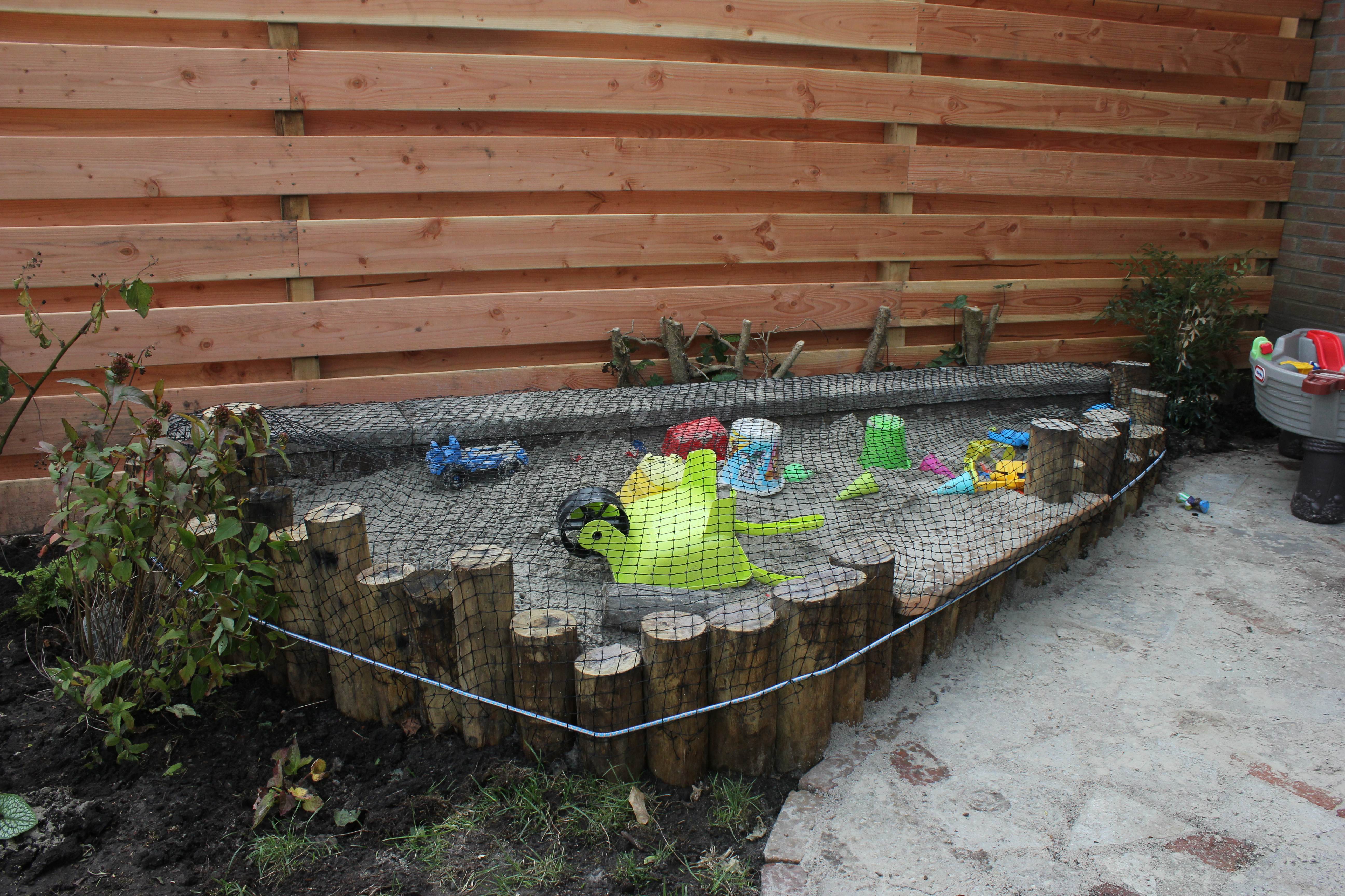 Bloem en moestuinbak, compostbak en takkenril, containeropslagplaatsen.