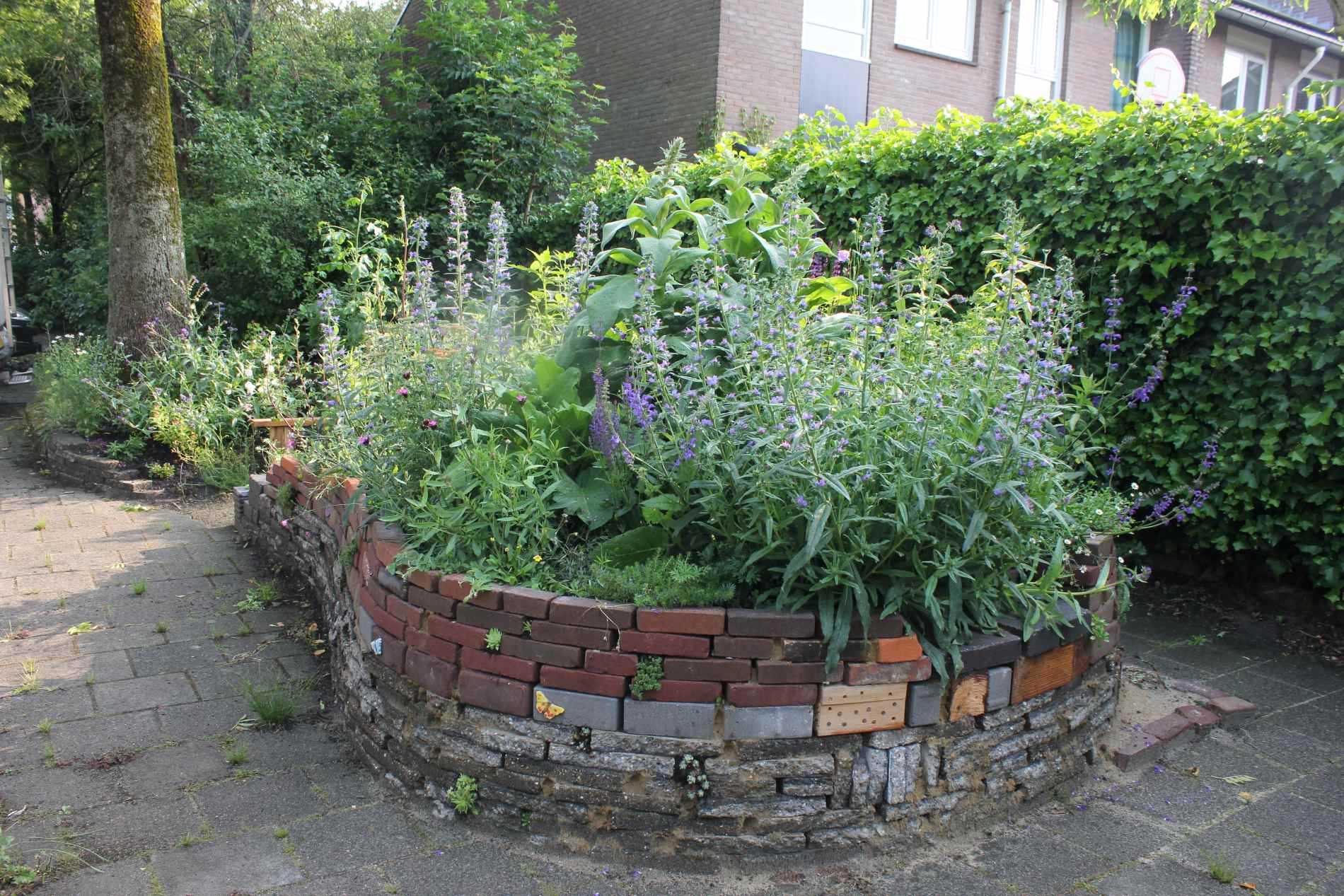 Verhoogde borders en kruidenbakken van hergebruikte steen